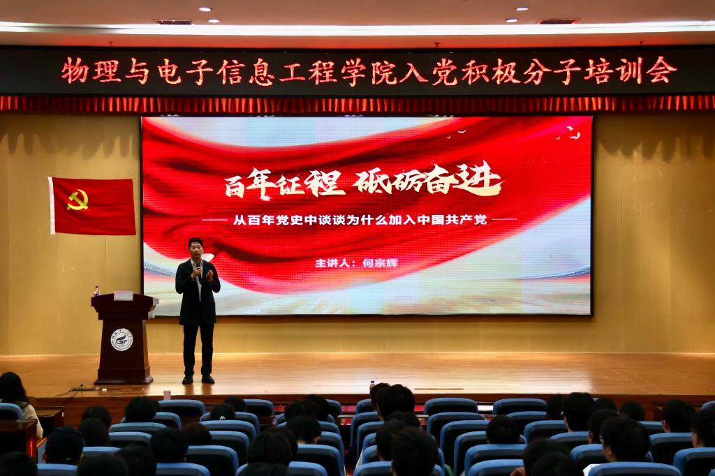 为端正入党动机,巩固党的理论知识,bv伟德国际1946党委于10月29日中午在雁山校区图书馆报告厅举办2024年秋季学期入党积极分子培训会。学院党支部书记、低年级入党积极分子参加了培训,会议由学院专职组织员、研究生党支部书记夏琳同志主持。本次培训会采取学院集中培训和各党支部分散学习相结合的方式,主要包括专题辅导报告、视频教学及现场教学等内容。 培训会第一环节邀请了学校党委组织部何宗辉同志作辅导报告。何宗辉同志以《从百年党史中谈谈为什么加入中国共产党》为题带领我们回顾了百年党史,带领同学们从优秀共产党员的事迹中,汲取前行的智慧与力量,鼓励同学们未来以实际行动践行共产党人的初心与使命,彰显先锋形象。 随后,学院学生党务中心程登月同志就积极分子值班制度以及发展党员的条件进行说明。为入党积极分子接下来提供了努力方向。 本次培训会有效引导了积极分子树立正确的入党动机,坚定理想信念,为我院发展合格的共产党员打下坚实的基础。 会议现场(一) 会议现场(二) 会议现场(三) (一审:夏琳,二审:蒋琼,三审:秦勤忠)