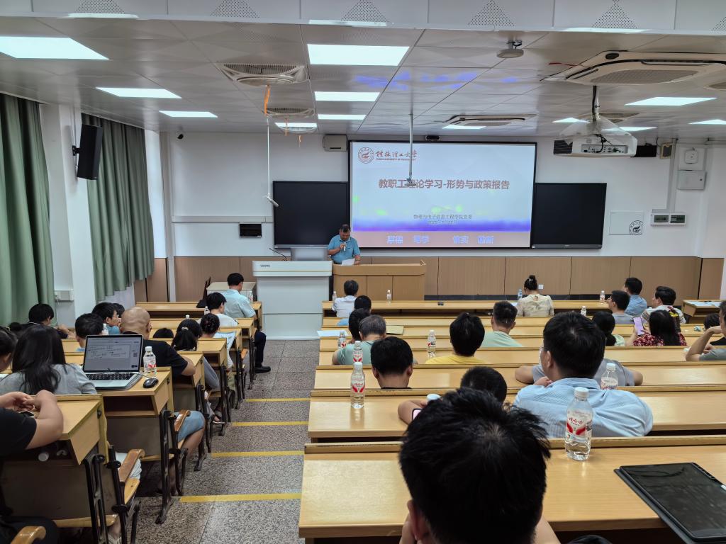 为深入贯彻中央八项规定精神学习教育,强化教职工廉洁意识,紧跟形势政策。7月12日下午,bv伟德国际1946在屏风校区9107教室开展教职工理论学习,本次理论学习由学院党委书记秦勤忠主持,学院全体教职工参加。 学习会开始,全体教职工观看警示教育片。片中案例深刻,为教职工敲响廉洁自律的思想警钟,使大家直观认识到违纪违法的后果,进一步筑牢了拒腐防变的思想防线。随后,秦勤忠书记作形势与政策报告。他立足国内国际形势,紧扣教育领域政策动态,结合学院工作实际作了全面深入的阐释,为学院的思想建设和事业发展指明方向。 此次全院教工理论学习是学院加强教职工思想政治建设、推进廉洁文化建设的重要举措。教职工深受触动,表示将以案为鉴、严守纪律、紧跟形势,以更饱满的热情和严谨的态度投入教学科研,积极营造风清气正的育人环境,为学院高质量发展贡献力量。 现场图片(一) 现场图片(二) 现场图片(三) (一审:夏琳,二审:蒋琼,三审:秦勤忠)