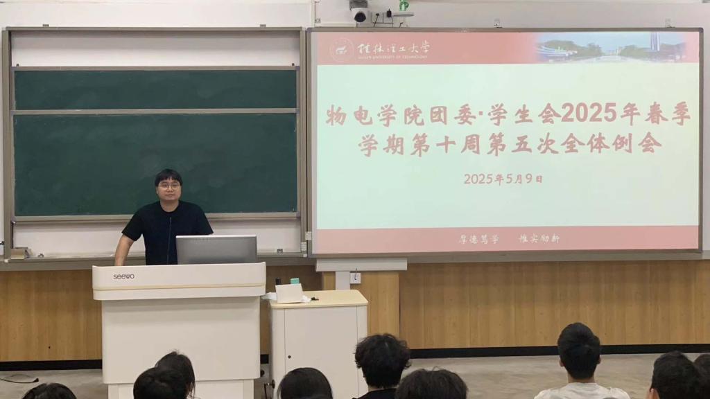 2025年5月9日中午,bv伟德国际1946团委、学生会在06104教室召开春季学期第十周第五次全体例会。会议由唐伟程同学主持,学院团委副书记王发老师出席,全体成员参会。
