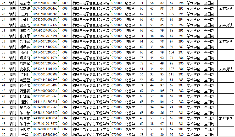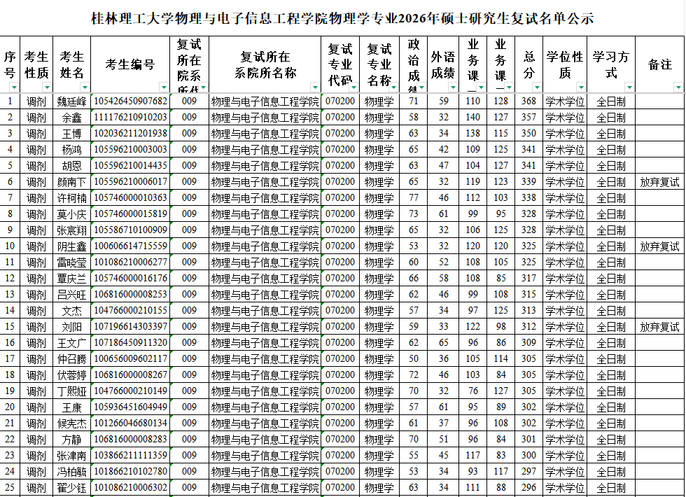 bv伟德国际1946物理学专业2026年硕士研究生复试名单公示