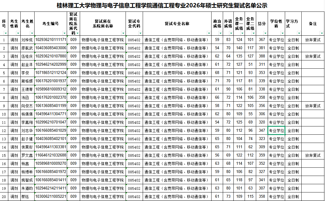 bv伟德国际1946通信工程专业2026年硕士研究生复试名单公示