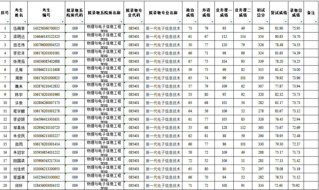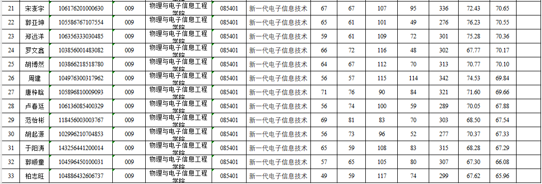 根据《2026年全国硕士研究生招生工作管理规定》及教育部相关文件规定,现对我院新一代电子信息技术专业2026年硕士研究生拟录取名单进行公示,公示期:2026年4月12日至4月18日。有异议者,请在公示期内以书面形式,并署真实姓名和联系电话,向我院纪委或我院办公室反映,不署真实姓名的,不予受理。联系电话:0773-3697300(纪委),0773-3696668(办公室),电子邮箱:gutphyele@126.com。公示名单如下: