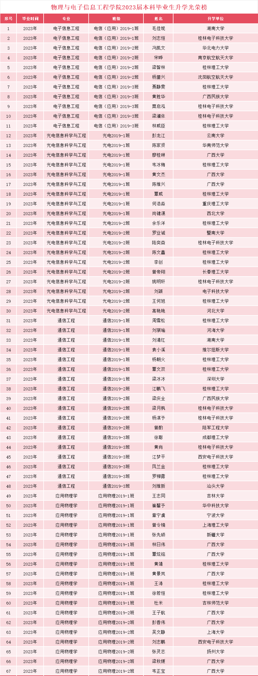 bv伟德国际19462023届本科毕业生升学光荣榜