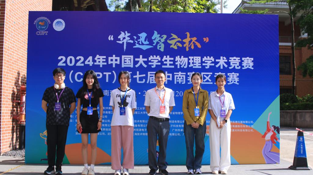 2024年7月23日,由中国大学生物理学术竞赛(CUPT)中南赛区委员会、华南理工大学共同主办的CUPT第七届中南赛区竞赛在华南理工大学落下了帷幕。由明星老师指导的《Non-contact resistance》(梁华琳、钟杏婷、杨轶钧、杨娇)、《Ping Pong rocket》(黄馨慧、高子恒、苏婷)、《Droplet microscope》(王琰诗琪、邹天乐、祁晓彤)三部作品被推荐到大赛组委会与来自中南地区的武汉大学、华中科技大学、中南大学、南方科技大学等19所高校43件作品同台竞技。2021级应用物理专业学生梁华琳、钟杏婷、2022级应用物理专业学生黄馨慧、2023级应用物理专业学生杨轶钧、2022级电子商务专业学生祁晓彤等同学现场参加了竞赛。经过评审我院三项作品最终均获三等奖。