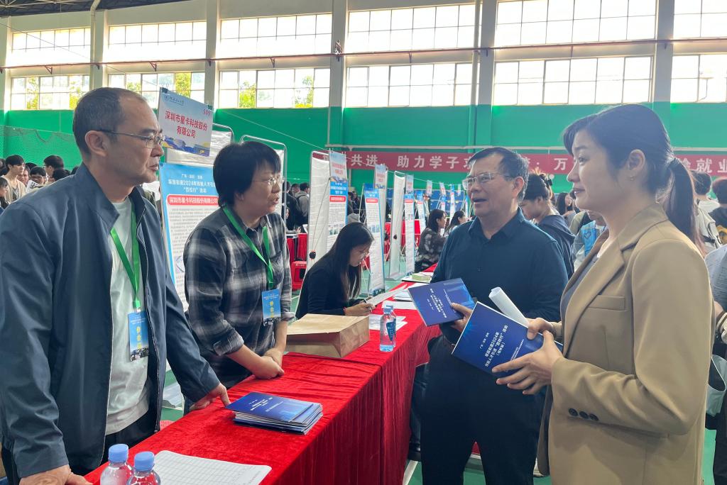 2024年10月25日,学校在雁山校区举办2025届毕业生秋季首场线下双选会。学院党委书记秦勤忠、党委副书记蒋琼、副院长李明、邓健志以及院长助理王志勇等领导一行,走访了多家参会企业,其中包括广东保伦电子股份有限公司、衡东光通讯技术(深圳)有限公司、广东韶华科技有限公司、深圳市思考乐文化教育科技发展有限公司、深圳市康冠科技股份有限公司、深圳齐心集团股份有限公司等知名企业。