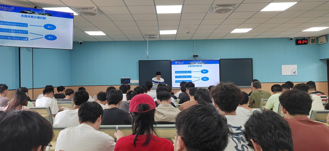 本次选取了课程《物理光学》进行听评课,主讲教师周振玮博士首先以介绍物理学家夫琅禾费引入课堂,进一步介绍了夫琅禾费在研究光的衍射方面的贡献。详细讲解了光的夫琅禾费衍射现象、推导过程、结果及应用等。课堂采用PPT与板书相结合的方式进行,课堂上学生听课认真,课堂学习气氛热烈,教学效果良好。